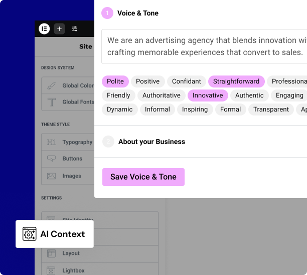 B. Klicke auf das AI-Symbol in jedem Elementor-Widget, das Inhalte, Bilder oder Code akzeptiert, und du wirst zum Verbindungsassistenten geleitet.