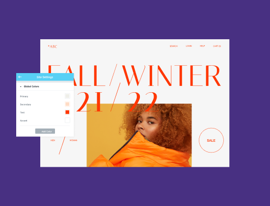 Control all colors and fonts globally. Set a style and adjust it across your entire site with just one click.